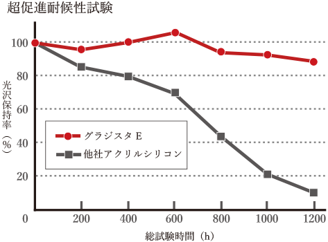 ※ グラジスタは建築外装塗料として耐侯1種以上の高い耐侯性能を発現します。